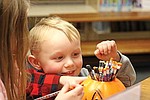 Three-year-old Asher Bear Belson picks out a prize for completing a Halloween Scavenger Hunt on Wednesday, Oct. 29, at the …