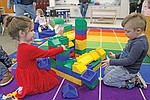 Having a whee of a time in their first visit to what will be their 4K classroom this fall, Colbie …