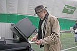 Feeding his ballot into a tabulator machine at the Hodag Dome, Steve Moe was one of more than 1,600 Rhinelander …