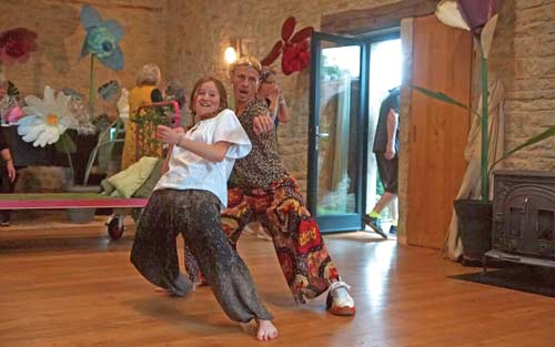 Zoey Davis practices movement with her castmate Raymi Ortusté-Quiroga in France.(Contributed photograph)