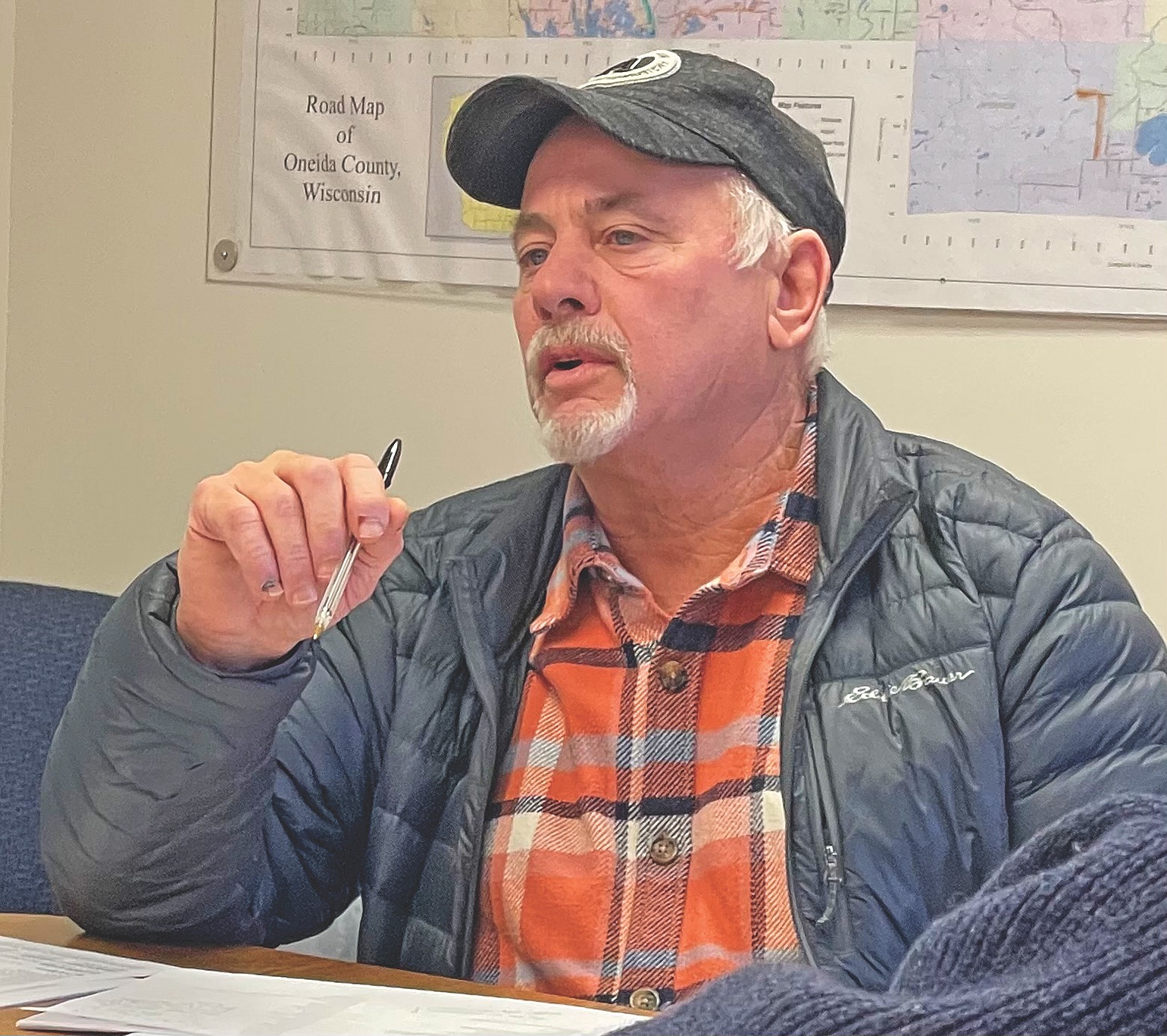Oneida County board chairman Scott Holewinski addresses snowplowing issues during a meeting of the Oneida County board’s public works committee on Dec. 4.(Photo by Brian Jopek/Lakeland Times)