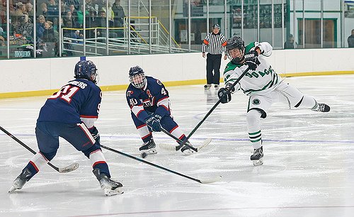 Shots were even at 27 apiece in the game and the Ice Hawks tacked on an empty-net goal with less than two minutes remaining as the Hodags made a desperation attempt to get back into the game.