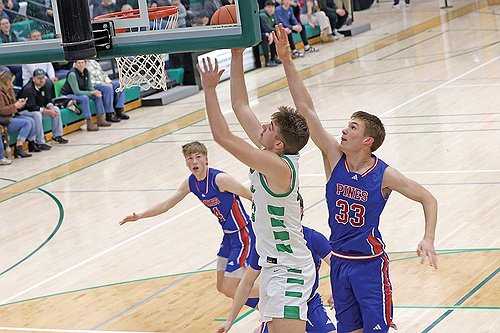 Northland Pines (5-2, 2-1 Great Northern) didn’t go away, despite trailing 34-26 at the break. The Eagles got the lead down to a single possession on three separate occasions early in the second half before tying the game at 44 on an Aiden Minx putback with 9:25 remaining. Pines went in front for the first time since the 6:40 mark of the first half on a Tyler Vojta layup with 7:55 to play.