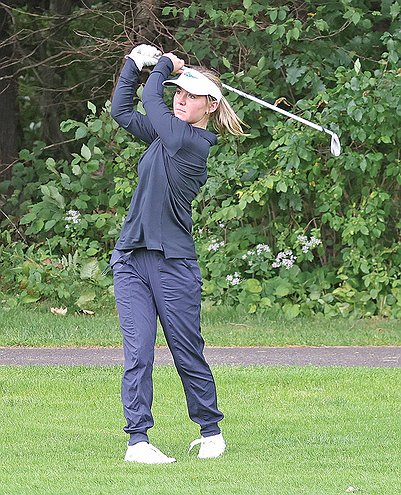 In this Sept. 4, 2025 file photo, Rhinelander’s Claire Yunkers hits a shot on the par-4 12 hole at Northwood Golf Club during a non-conference girls’ golf match Thursday, Sept. 4. Yunkers had the second best scoring average for the Hodags this fall at 59.3 strokes per nine holes. (Jeremy Mayo/River News)Anderson earned the team’s most valuable player award with the lowest scoring average on the squad — averaging 51.7 strokes per nine holes during the season.