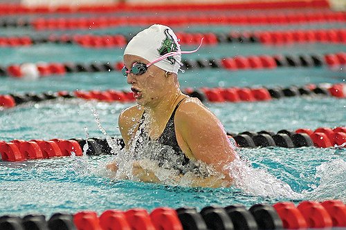 Junior Ella Heck scored a third-place finish in the 100 breaststroke (1:06.65) — a spot she held virtually from start-to-finish as she came home with a personal-best time.