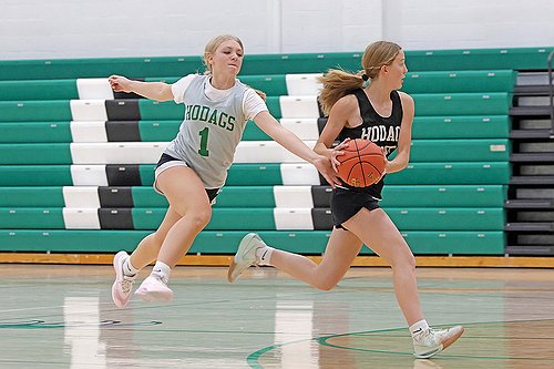 Teagan Clark looks to strip the ball during Rhinelander High School girls’ basketball practice at the Jim Miazga Community Gymnasium Thursday, Nov. 13. Teagan Clark, coach Ryan Clark’s daughter and Aubryn Clark’s sister, headlines a freshman class that figures to contribute right away for the Hodag varsity. (Jeremy Mayo/River News)The returners will be bolstered by an incoming freshman class that includes the second of coach Clark’s three daughters, Teagan. Coach Clark not only called her the best defender in the program, but she will work in concert with her older sister and Lamers to give the Hodags a triple scoring threat.