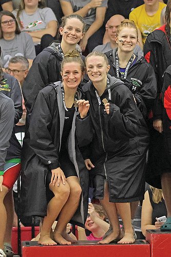 Six of the seven state qualifiers reached the podium in at least one event thanks to all three relay teams scoring top-four finishes. Pooch, Ella Heck, Gruett and Chiamulera took second in the 200 medley relay; Lamers, Chiamulera, Ella Heck and Mickevicius were third in the 400 freestyle relay and Pooch, Mickevicius, Gruett and Lamers were fourth in the 200 freestyle relay.