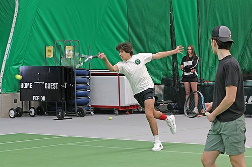 The Rhinelander High School boys’ tennis team scrimmaged Wausau West Tuesday, April 7 in the Hodag Dome.
