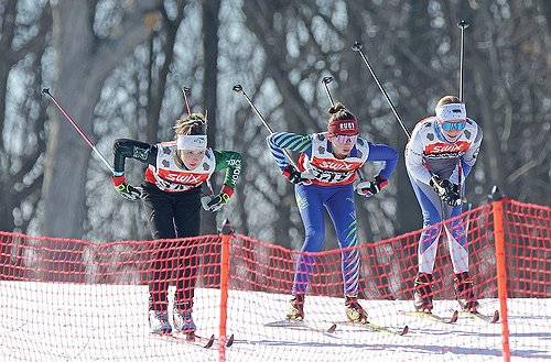 On Sunday, Skiers raced against the clock in the morning, with their qualifying times over a 1.1-kilometer classic loop (0.8-kilometer for middle schoolers) setting the field for later in the day. The top 32 in each division made the knockout rounds while everyone else settled in to eight-skier heats to determine their final position.
