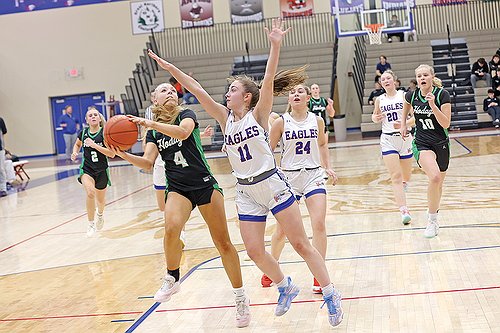 Ryley Darr paced the Eagles with 17 points while Natalie Kohn added 14 points and nine rebounds.