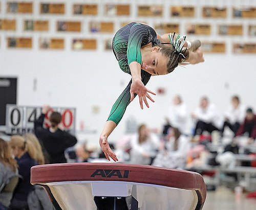 “I had a five-year plan, and we’re in year four of that five-year plan. We’re doing well, but would never have guessed that we would have had the turnout of now juniors, join their sophomore year,” coach Aschenbrenner said. “June, for example, (competed on) varsity vault scored an 8.0 this meet. Our freshman came in super strong and then our regular varsity — Addison, Emeline, Sam, Alexis (are) doing great.”