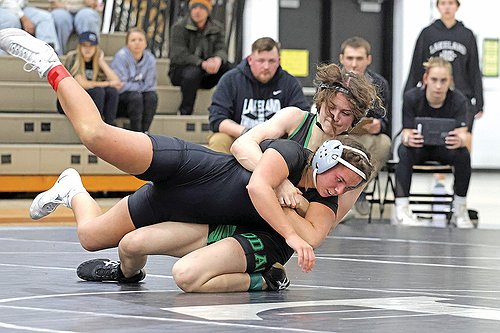 It was a busy couple of days for the Rhinelander High School girls’ wrestling team. After finishing in the middle of the pack Saturday, Jan. 10 in the Bluejay Challenge in Merrill, the squad was back on the mat Monday, taking part in a make-up Great Northern/Wisconsin Valley challenge night at Lakeland Union High School in Minocqua.