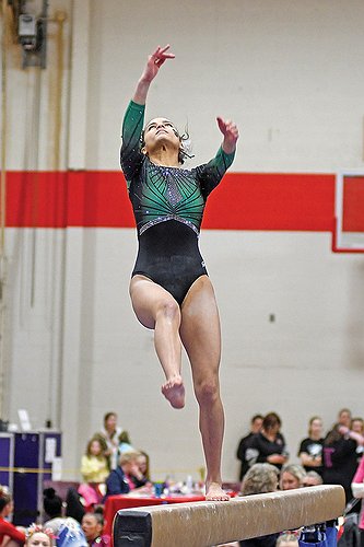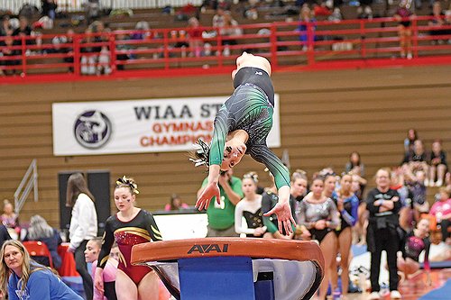Junior Alexis Smith was the first gymnast to compete Saturday on the vault. After scoring an 8.3333 on her first attempt, she picked it up on the second, earning higher marks from all three judges as she scored an 8.4667. That held on for a tie for 19th overall and was almost a half point higher than her performance two years ago at the state meet.