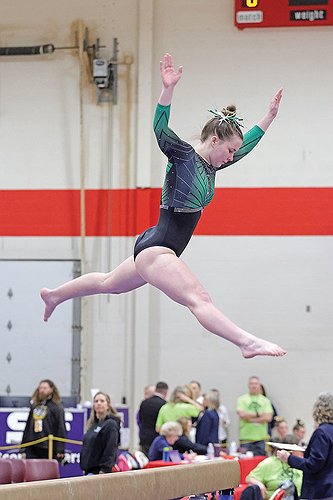 “The girls were able to come out here and do their routines, and it really showed when we were pretty much consistent with our scores for the whole year, which is hard to do in its state,” coach Kristina Aschenbrenner said. “Usually scores drop, five tenths to a whole point even. So we were able to come out and do our routines. We had some season-bests, even here at this meet, so that’s pretty impressive.”